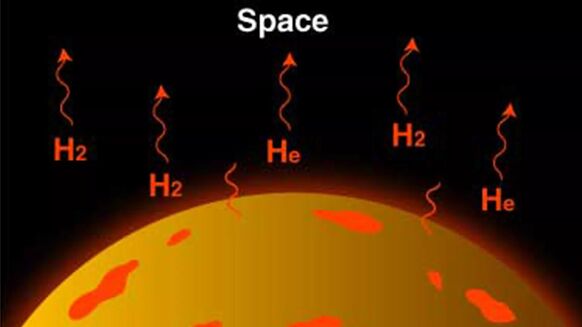De net gevormde aarde is enorm heet, waardoor de helium- en waterstofmoleculen heel snel trillen en ontsnappen naar de ruimte (bron: NOAA/JPL-Caltech)