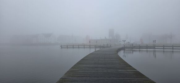 Waar in het zuiden zonnig was, bleef het in Blauwestad (Groningen) mistig en koud gisteren. Foto gemaakt door Arnout Bolt.