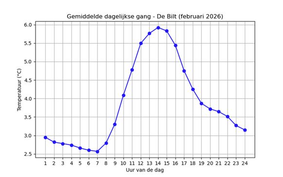 Gemiddelde dagelijkse gang in februari 2026 tot en met vrijdag 20 februari.